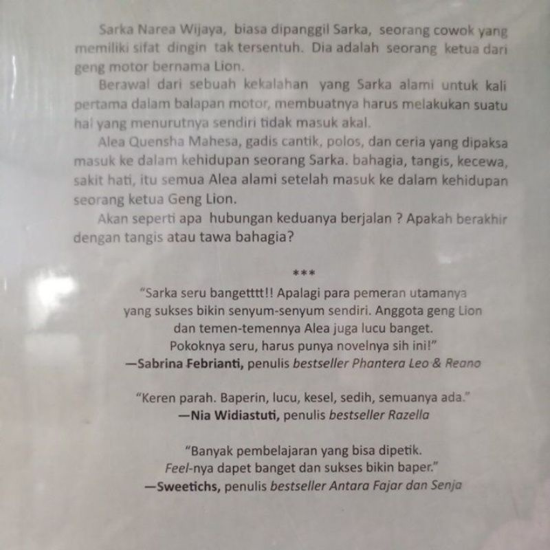 - Produk ini tidak sedang Flash Sale, tidak semua Seller suka Flash Sale, saya rasa ini bukan kekurangan, Jika Anda anggap Harga Rp. 16.800,00 itu murah untuk novel sarka by indri apriliani ya ambil saja