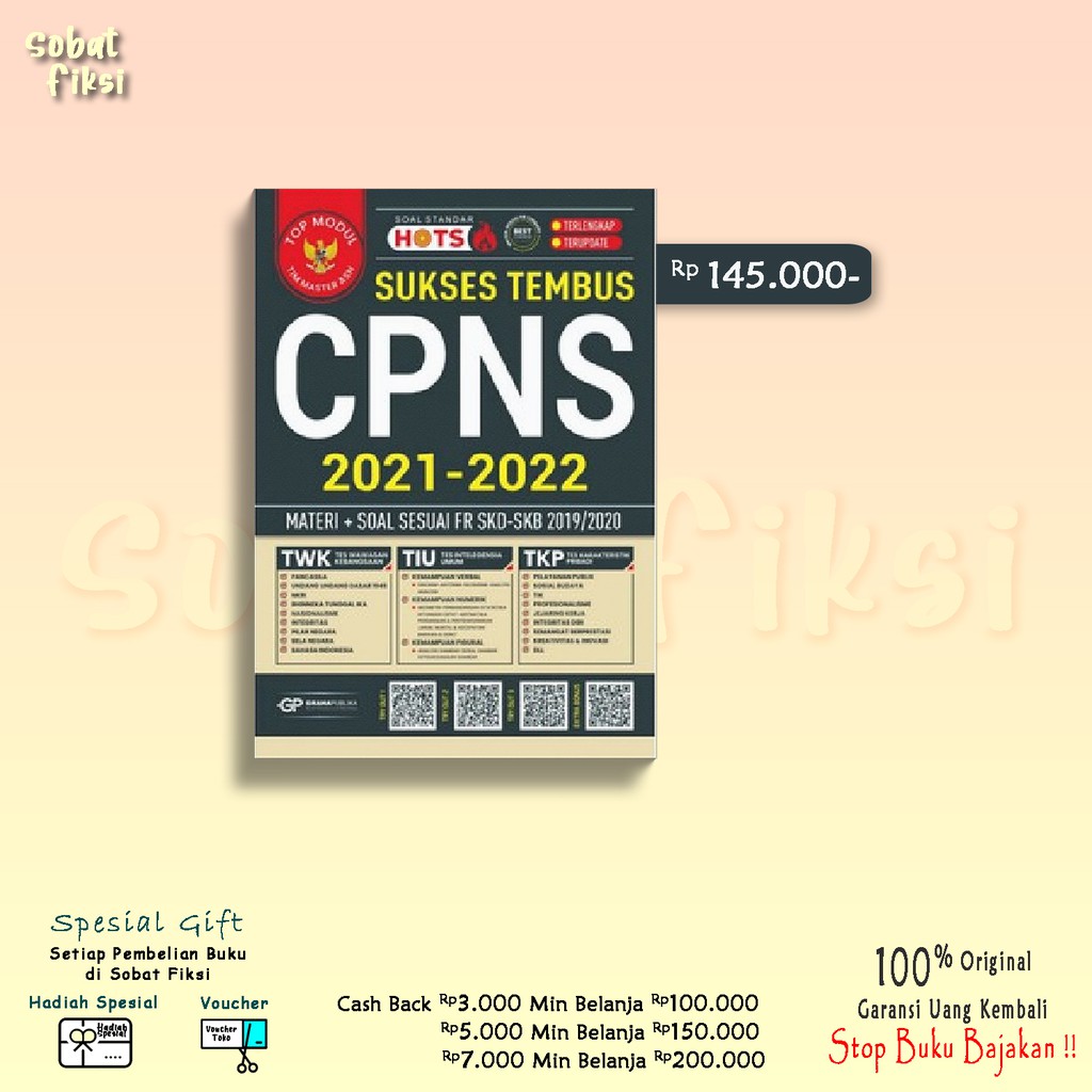 Produk Sukses Tembus CPNS 2020 2021 Materi Plus Soal Sesuai FR SKD SBK 2019 2020 ini harganya adalah Rp. 145.000,00 dan saat ini sedang Diskon , Produk ini sendiri saat saya tulis Artikel ini sudah dilihat sebanyak kali dan sudah disukai sebanyak 0 kali.