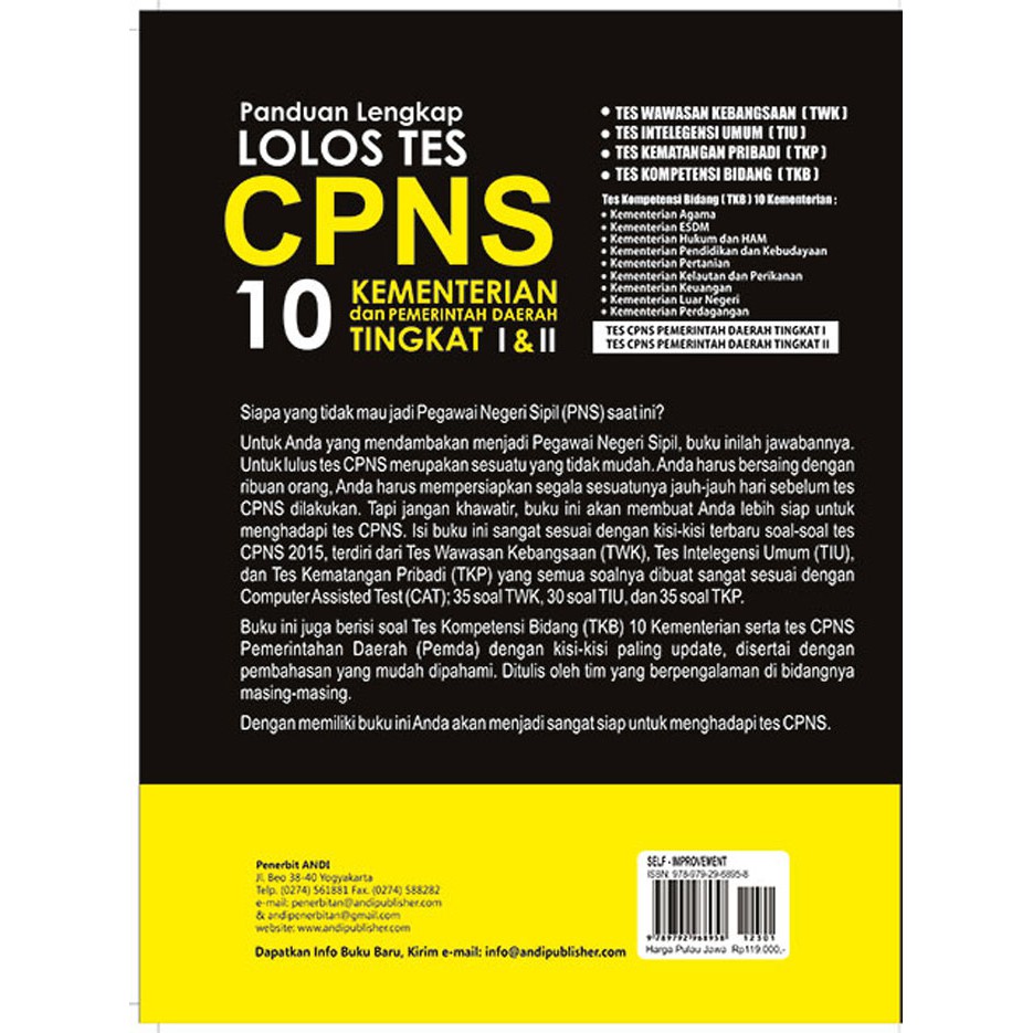 - Produk ini tidak sedang Flash Sale, tidak semua Seller suka Flash Sale, saya rasa ini bukan kekurangan, Jika Anda anggap Harga Rp. 85.680,00 itu murah untuk Panduan Lengkap Lolos Tes CPNS, 10 Kementrian dan Pemerintah Daerah Tingkat I & II ya ambil saja