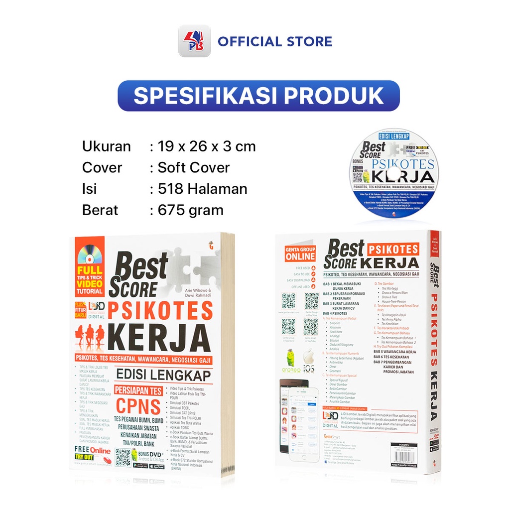 - Produk ini tidak sedang Flash Sale, tidak semua Seller suka Flash Sale, saya rasa ini bukan kekurangan, Jika Anda anggap Harga Rp. 118.680,00 itu murah untuk Buku Psikotes Best Score Psikotes Masuk Kerja Persiapan Tes CPNS 2022-2023 Edisi Lengkap Bonus Aplikasi ya ambil saja